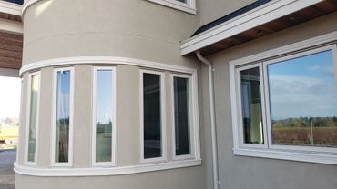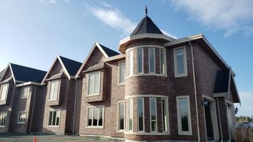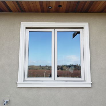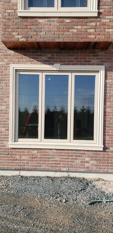 These window mouldings made from solid stone material, NOT STYROFOAM. This material is lightweight and paintable. Easy to install on a scratch coat with cement mortar. Available in 18 in, 24 in, and 36 in long pieces. Contact us for custom design and color.